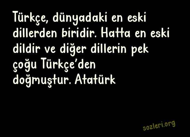 Türkçe, dünyadaki en eski dillerden biridir. Hatta en eski dildir ve diğer dillerin pek çoğu Türkçe’den doğmuştur. Atatürk ( Türkçe )