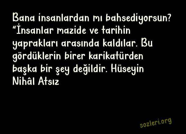 Bana insanlardan mı bahsediyorsun? “İnsanlar mazide ve tarihin yaprakları arasında kaldılar. Bu gördüklerin birer karikatürden başka bir şey değildir. Hüseyin Nihâl Atsız ( Türkçü Sözler )