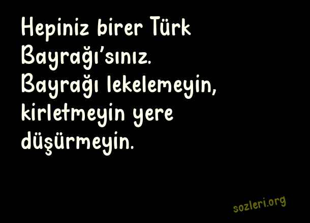 Hepiniz birer Türk Bayrağı’sınız. Bayrağı lekelemeyin, kirletmeyin yere düşürmeyin. ( Türkçü Sözler )
