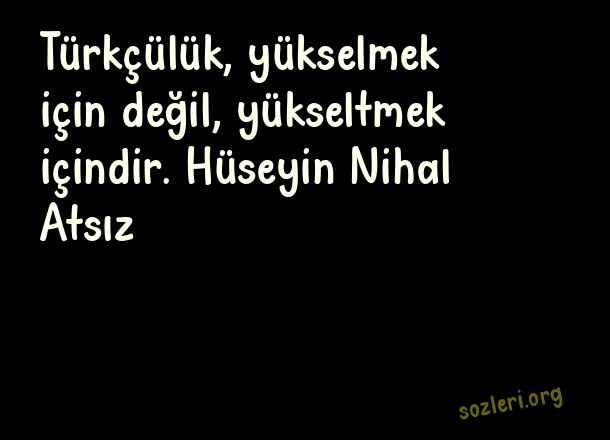 Türkçülük, yükselmek için değil, yükseltmek içindir. Hüseyin Nihal Atsız ( Türkçü Sözler )