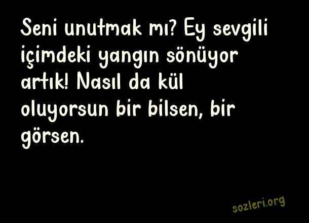 Seni unutmak mı? Ey sevgili içimdeki yangın sönüyor artık! Nasıl da kül oluyorsun bir bilsen, bir görsen. ( Ukala Sözler )