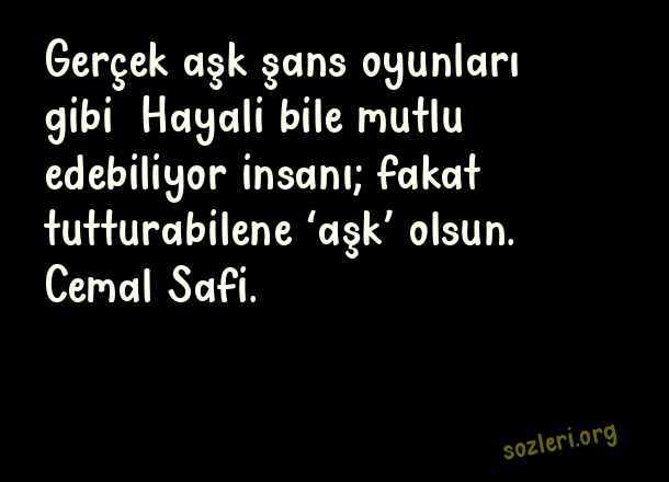 Gerçek aşk şans oyunları gibi… Hayali bile mutlu edebiliyor insanı; fakat tutturabilene ‘aşk’ olsun. Cemal Safi. ( Ünlü Aşk )