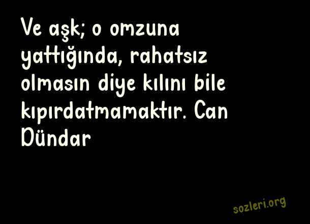 Ve aşk; o - Ünlü Aşk Sözleri .. Ve aşk; o omzuna yattığında, rahatsız olmasın diye kılını bile kıpırdatmamaktır. Can Dündar ( Ünlü Aşk )