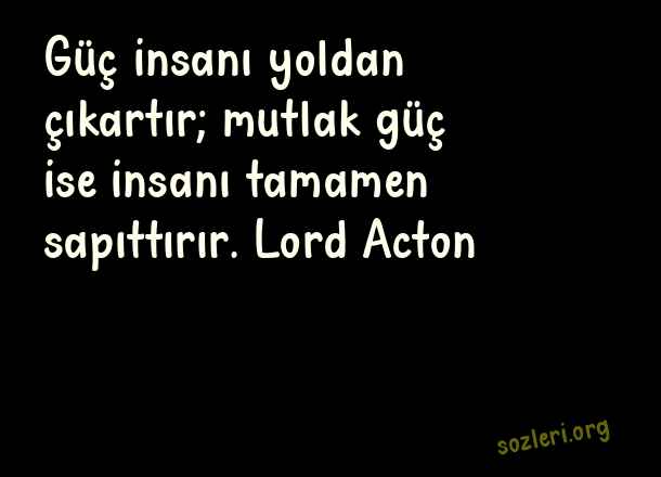 Güç insanı yoldan çıkartır; mutlak güç ise insanı tamamen sapıttırır. Lord Acton ( Ünlü Düşünürlerin )