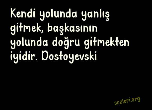 Kendi yolunda yanlış gitmek, başkasının yolunda doğru gitmekten iyidir. Dostoyevski ( Ünlü Düşünürlerin )