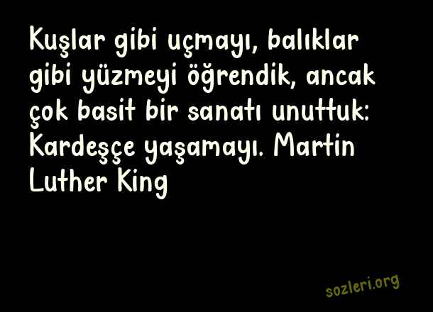 Kuşlar gibi uçmayı, balıklar gibi yüzmeyi öğrendik, ancak çok basit bir sanatı unuttuk: Kardeşçe yaşamayı. Martin Luther King ( Ünlü Düşünürlerin )