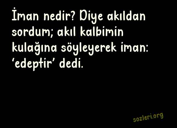 İman nedir? Diye akıldan sordum; akıl kalbimin kulağına söyleyerek iman: ‘edeptir’ dedi. ( Ünlü Mevlana )