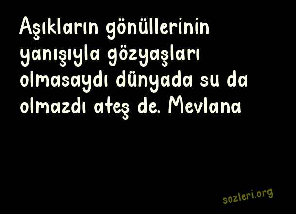Aşıkların gönüllerinin yanışıyla gözyaşları olmasaydı dünyada su da olmazdı ateş de. Mevlana ( Dünyaca Ünlü Sözler )