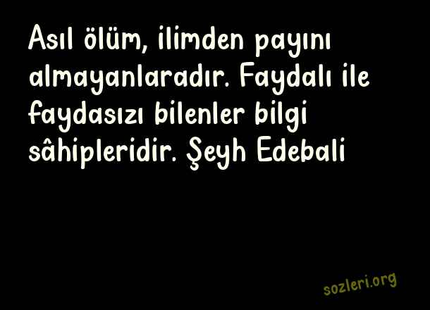 Asıl ölüm, ilimden payını almayanlaradır. Faydalı ile faydasızı bilenler bilgi sâhipleridir. Şeyh Edebali ( Ünlülerin Son )