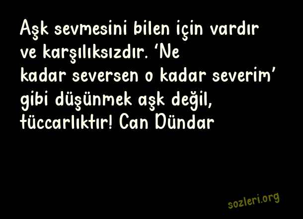 Aşk sevmesini bilen için vardır ve karşılıksızdır. ‘Ne kadar seversen o kadar severim’ gibi düşünmek aşk değil, tüccarlıktır! Can Dündar ( Ünlü Aşk )