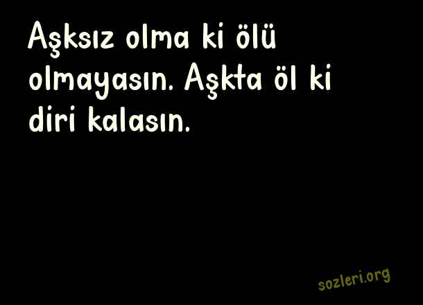 Aşksız olma ki ölü olmayasın. Aşkta öl ki diri kalasın. ( Ünlü Mevlana )