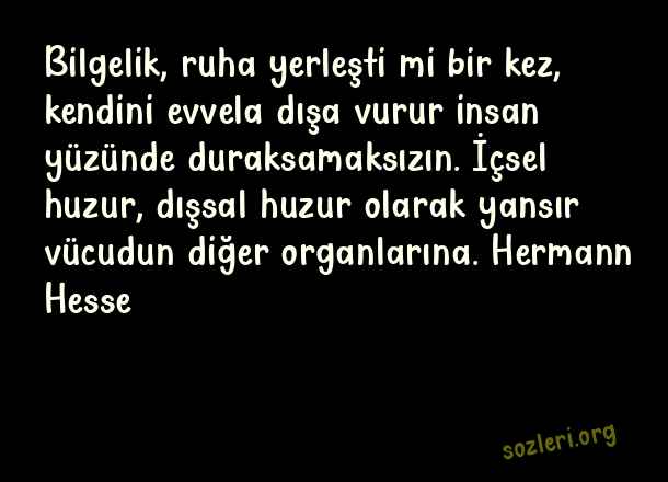 Bilgelik, ruha yerleşti mi bir kez, kendini evvela dışa vurur insan yüzünde duraksamaksızın. İçsel huzur, dışsal huzur olarak yansır vücudun diğer organlarına. Hermann Hesse ( Ünlü Düşünürlerin )