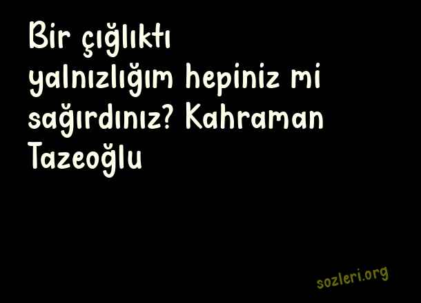 Bir çığlıktı yalnızlığım - Dünyaca Ünlü Sözler .. Bir çığlıktı yalnızlığım hepiniz mi sağırdınız? Kahraman Tazeoğlu ( Dünyaca Ünlü Sözler )