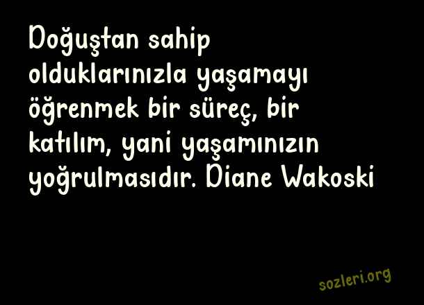 Doğuştan sahip olduklarınızla yaşamayı öğrenmek bir süreç, bir katılım, yani yaşamınızın yoğrulmasıdır. Diane Wakoski ( Anlamlı Ünlü Sözler )