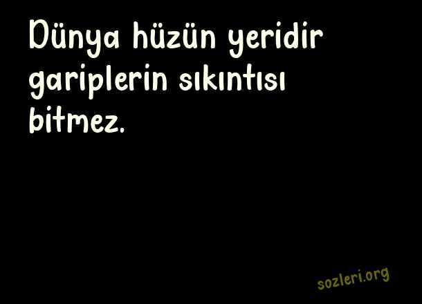 Dünya hüzün yeridir gariplerin sıkıntısı bitmez. ( Hüzünlü Sözler )