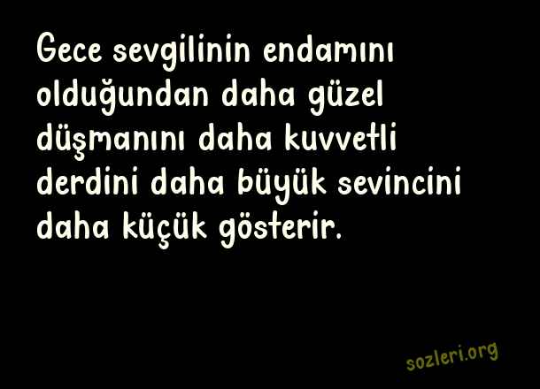 Gece sevgilinin endamını olduğundan daha güzel düşmanını daha kuvvetli derdini daha büyük sevincini daha küçük gösterir. ( Hüzünlü Gece )