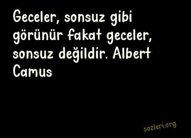 Geceler, sonsuz gibi görünür fakat geceler, sonsuz değildir. Albert Camus ( Hüzünlü Gece )