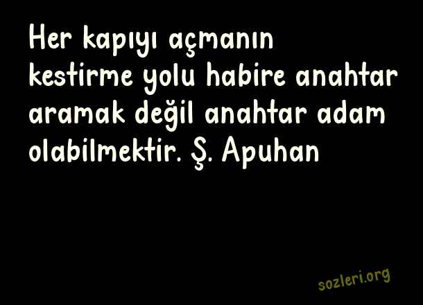 Her kapıyı açmanın kestirme yolu habire anahtar aramak değil anahtar adam olabilmektir. Ş. Apuhan ( Kısa Ünlü Sözler )