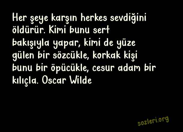 Her şeye karşın herkes sevdiğini öldürür. Kimi bunu sert bakışıyla yapar, kimi de yüze gülen bir sözcükle, korkak kişi bunu bir öpücükle, cesur adam bir kılıçla. Oscar Wilde ( Ünlü Düşünürlerin )