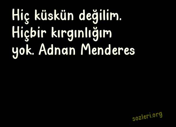 Hiç küskün değilim. - Ünlülerin Son Sözleri .. Hiç küskün değilim. Hiçbir kırgınlığım yok. Adnan Menderes ( Ünlülerin Son )