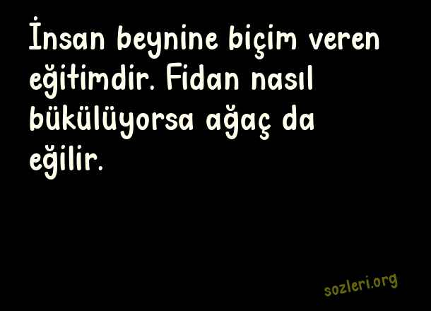 İnsan beynine biçim veren eğitimdir. Fidan nasıl bükülüyorsa ağaç da eğilir. ( Düşündüren Kısa Ünlü Sözler )