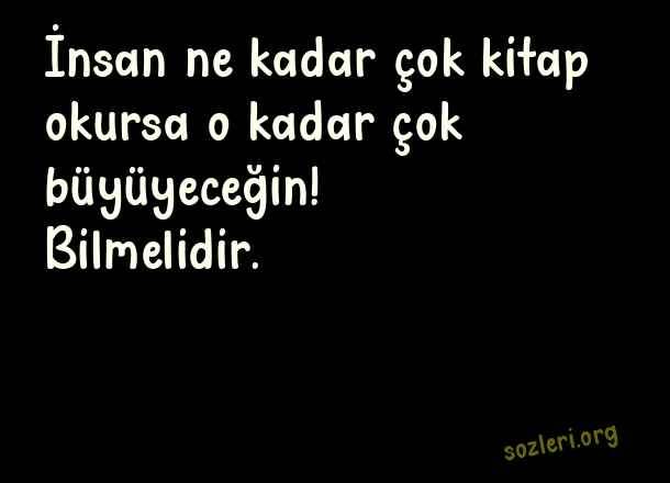 İnsan ne kadar çok kitap okursa o kadar çok büyüyeceğin! Bilmelidir. ( Düşündüren Kısa Ünlü Sözler )