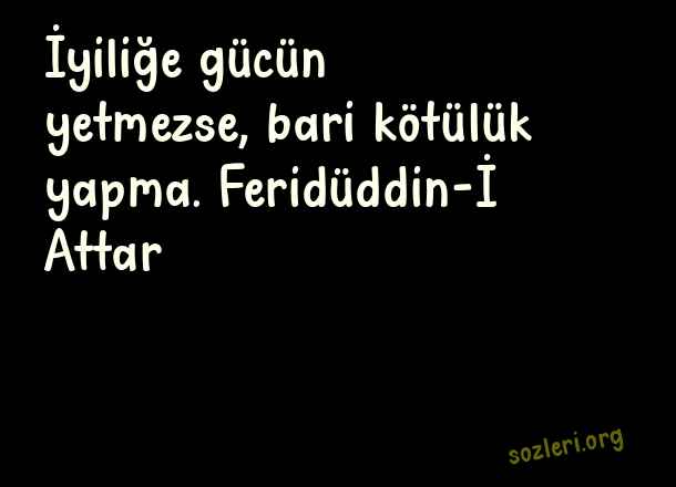 İyiliğe gücün yetmezse, bari kötülük yapma. Feridüddin-İ Attar ( Ünlülerden Güzel Kısa Sözler )