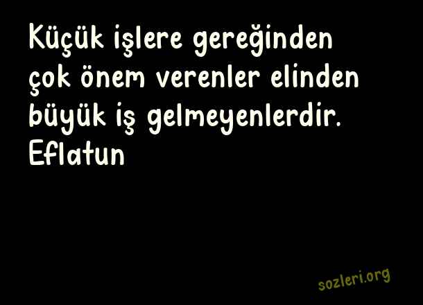 Küçük işlere gereğinden çok önem verenler elinden büyük iş gelmeyenlerdir. Eflatun ( Kısa Ünlü Sözler )