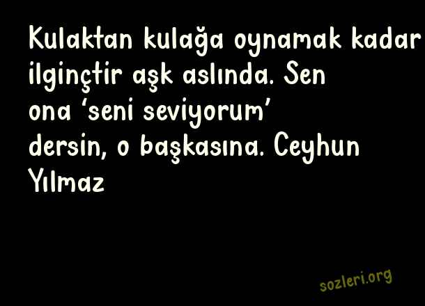 Kulaktan kulağa oynamak kadar ilginçtir aşk aslında. Sen ona ‘seni seviyorum’ dersin, o başkasına. Ceyhun Yılmaz ( Ünlü Aşk )