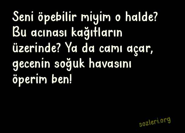 Seni öpebilir miyim o halde? Bu acınası kağıtların üzerinde? Ya da camı açar, gecenin soğuk havasını öperim ben! ( Hüzünlü Gece )