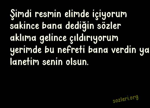 Şimdi resmin elimde içiyorum sakince bana dediğin sözler aklıma gelince çıldırıyorum yerimde bu nefreti bana verdin ya lanetim senin olsun. ( Hüzünlü Mesajlar )
