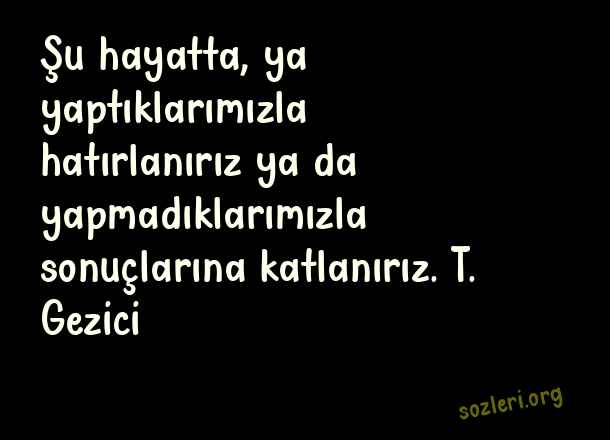 Şu hayatta, ya yaptıklarımızla hatırlanırız ya da yapmadıklarımızla sonuçlarına katlanırız. T. Gezici ( Günlük Sözler )