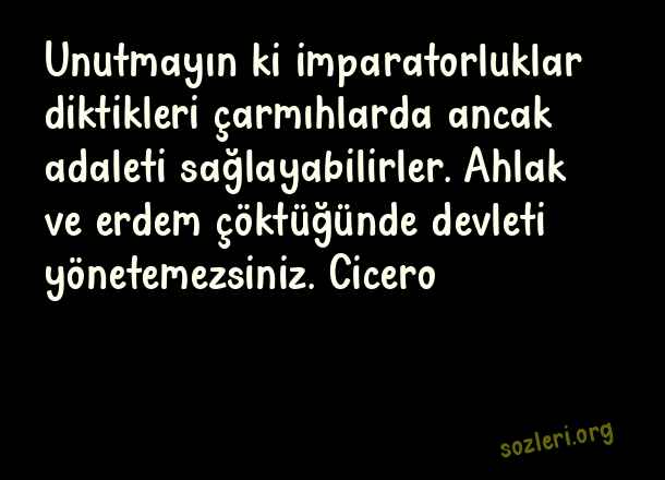 Unutmayın ki imparatorluklar diktikleri çarmıhlarda ancak adaleti sağlayabilirler. Ahlak ve erdem çöktüğünde devleti yönetemezsiniz. Cicero ( Ünlü Düşünürlerin )