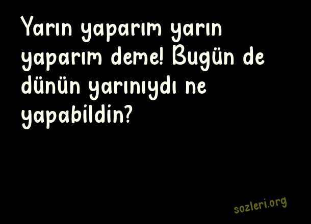Yarın yaparım yarın yaparım deme! Bugün de dünün yarınıydı ne yapabildin? ( Ünlü Mevlana )