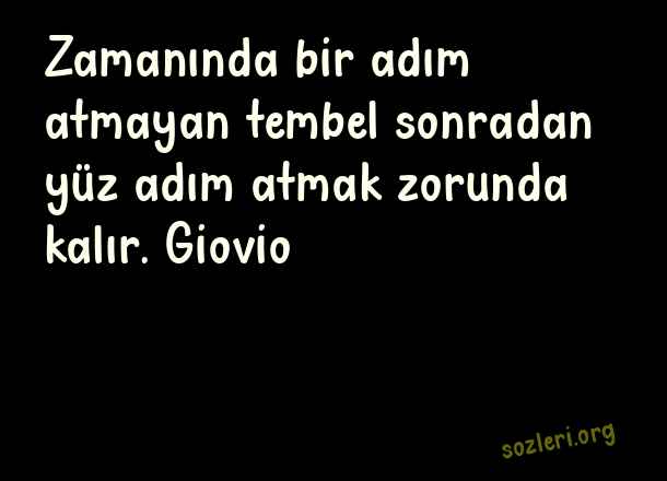 Zamanında bir adım atmayan tembel sonradan yüz adım atmak zorunda kalır. Giovio ( Kısa Ünlü Sözler )