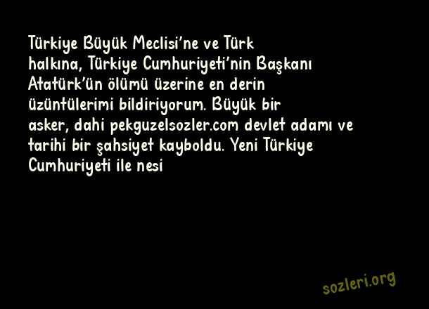 Türkiye Büyük Meclisi’ne ve Türk halkına, Türkiye Cumhuriyeti’nin Başkanı Atatürk’ün ölümü üzerine en derin üzüntülerimi bildiriyorum. Büyük bir asker, dahi devlet adamı ve tarihi bir şahsiyet kayboldu. Yeni Türkiye Cumhuriyeti ile nesi ( Ünlülerden 10 Kasım )
