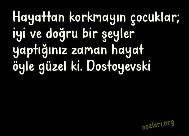 Hayattan korkmayın çocuklar; iyi ve doğru bir şeyler yaptığınız zaman hayat öyle güzel ki. Dostoyevski ( Ünlülerden Güzel Kısa Sözler )