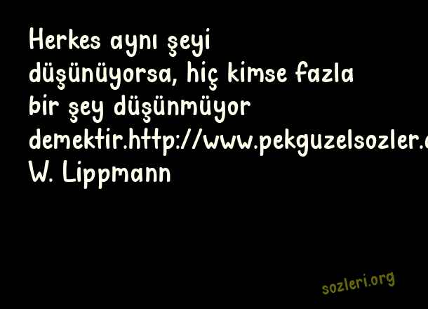 Herkes aynı şeyi düşünüyorsa, hiç kimse fazla bir şey düşünmüyor demektir.http://www./unlulerden-guzel-kisa-sozler W. Lippmann ( Ünlülerden Güzel Kısa Sözler )