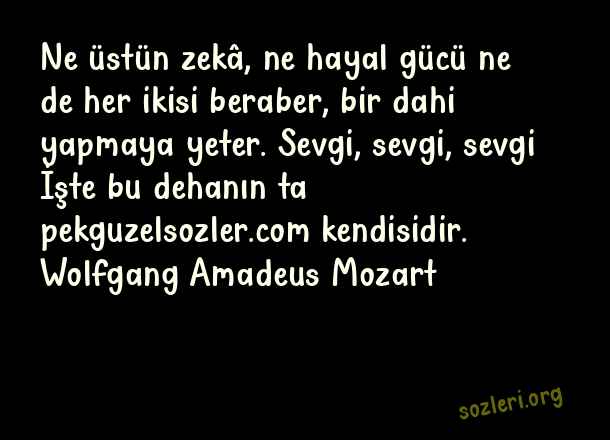 Ne üstün zekâ, ne hayal gücü ne de her ikisi beraber, bir dahi yapmaya yeter. Sevgi, sevgi, sevgi… İşte bu dehanın ta kendisidir. Wolfgang Amadeus Mozart ( Ünlülerin Güzel )