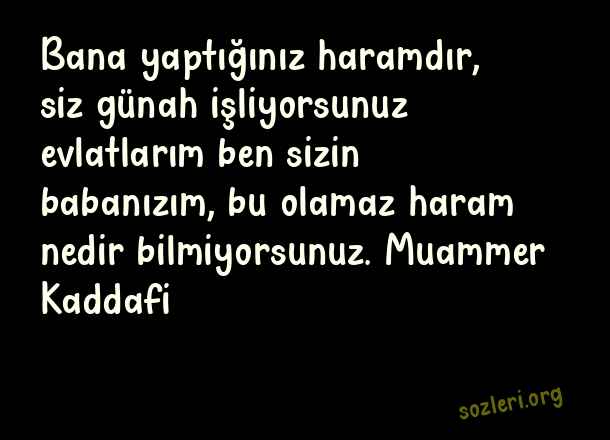 Bana yaptığınız haramdır, siz günah işliyorsunuz evlatlarım ben sizin babanızım, bu olamaz haram nedir bilmiyorsunuz. Muammer Kaddafi ( Ünlülerin Son )