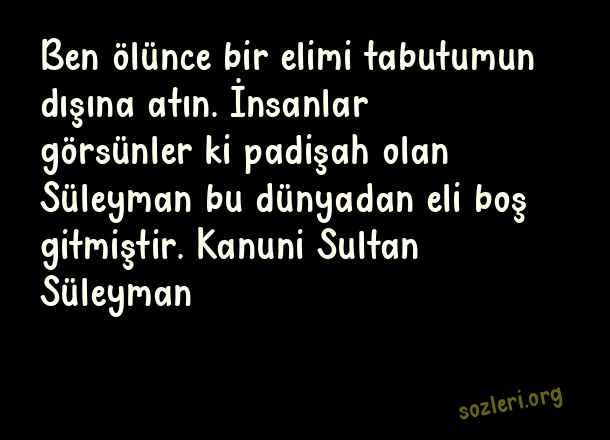 Ben ölünce bir elimi tabutumun dışına atın. İnsanlar görsünler ki padişah olan Süleyman bu dünyadan eli boş gitmiştir. Kanuni Sultan Süleyman ( Ünlülerin Son )