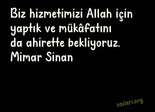 Biz hizmetimizi Allah için yaptık ve mükâfatını da ahirette bekliyoruz. Mimar Sinan ( Ünlülerin Son )