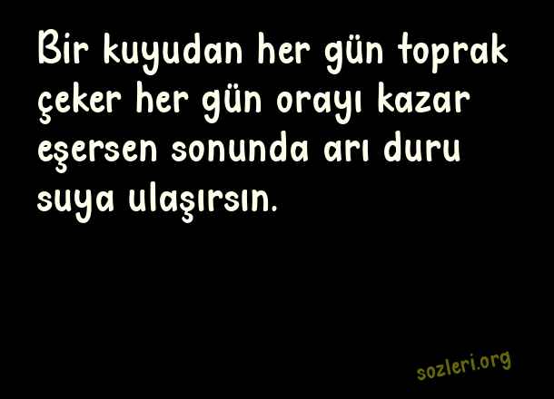 Bir kuyudan her gün toprak çeker her gün orayı kazar eşersen sonunda arı duru suya ulaşırsın. ( Düzgün Sözler )