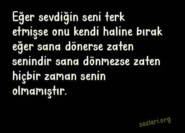 Eğer sevdiğin seni terk etmişse onu kendi haline bırak eğer sana dönerse zaten senindir sana dönmezse zaten hiçbir zaman senin olmamıştır. ( Düzgün Sözler )