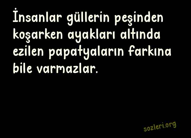 İnsanlar güllerin peşinden koşarken ayakları altında ezilen papatyaların farkına bile varmazlar. ( Üzgün Sözler )