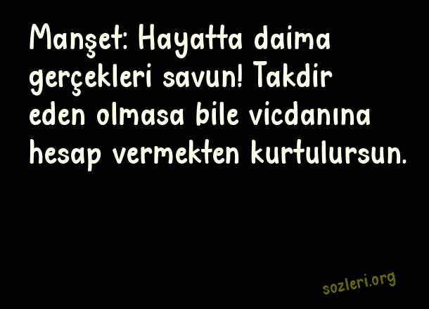 Manşet: Hayatta daima gerçekleri savun! Takdir eden olmasa bile vicdanına hesap vermekten kurtulursun. ( Düzgün Sözler )