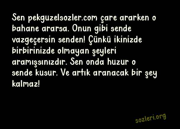 Sen çare ararken o bahane ararsa. Onun gibi sende vazgeçersin senden! Çünkü ikinizde birbirinizde olmayan şeyleri aramışsınızdır. Sen onda huzur o sende kusur. Ve artık aranacak bir şey kalmaz! ( Düzgün Sözler )