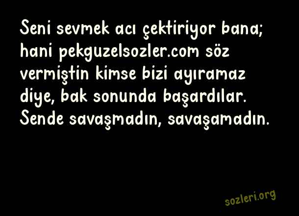 Seni sevmek acı çektiriyor bana; hani söz vermiştin kimse bizi ayıramaz diye, bak sonunda başardılar. Sende savaşmadın, savaşamadın. ( Üzgün Sözler )