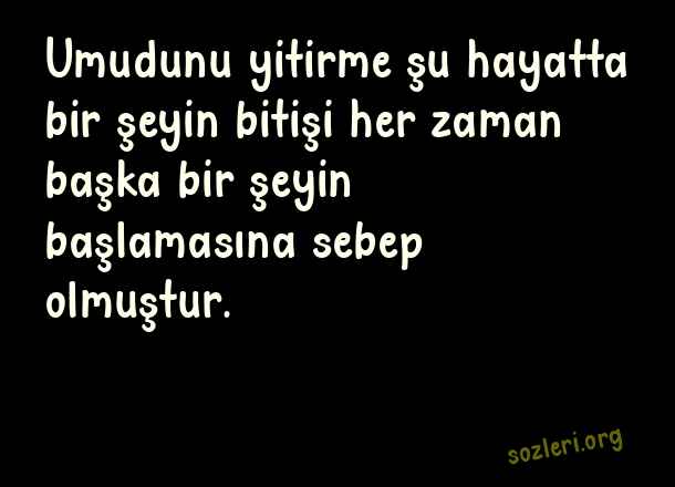 Umudunu yitirme şu hayatta bir şeyin bitişi her zaman başka bir şeyin başlamasına sebep olmuştur. ( Düzgün Sözler )