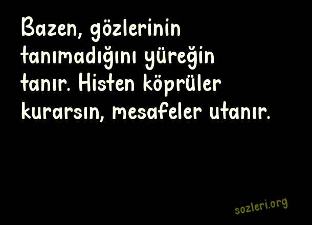 Bazen, gözlerinin tanımadığını yüreğin tanır. Histen köprüler kurarsın, mesafeler utanır. ( Sevgiliye Sevilene En Güzel Kısa Uzun Aşk )